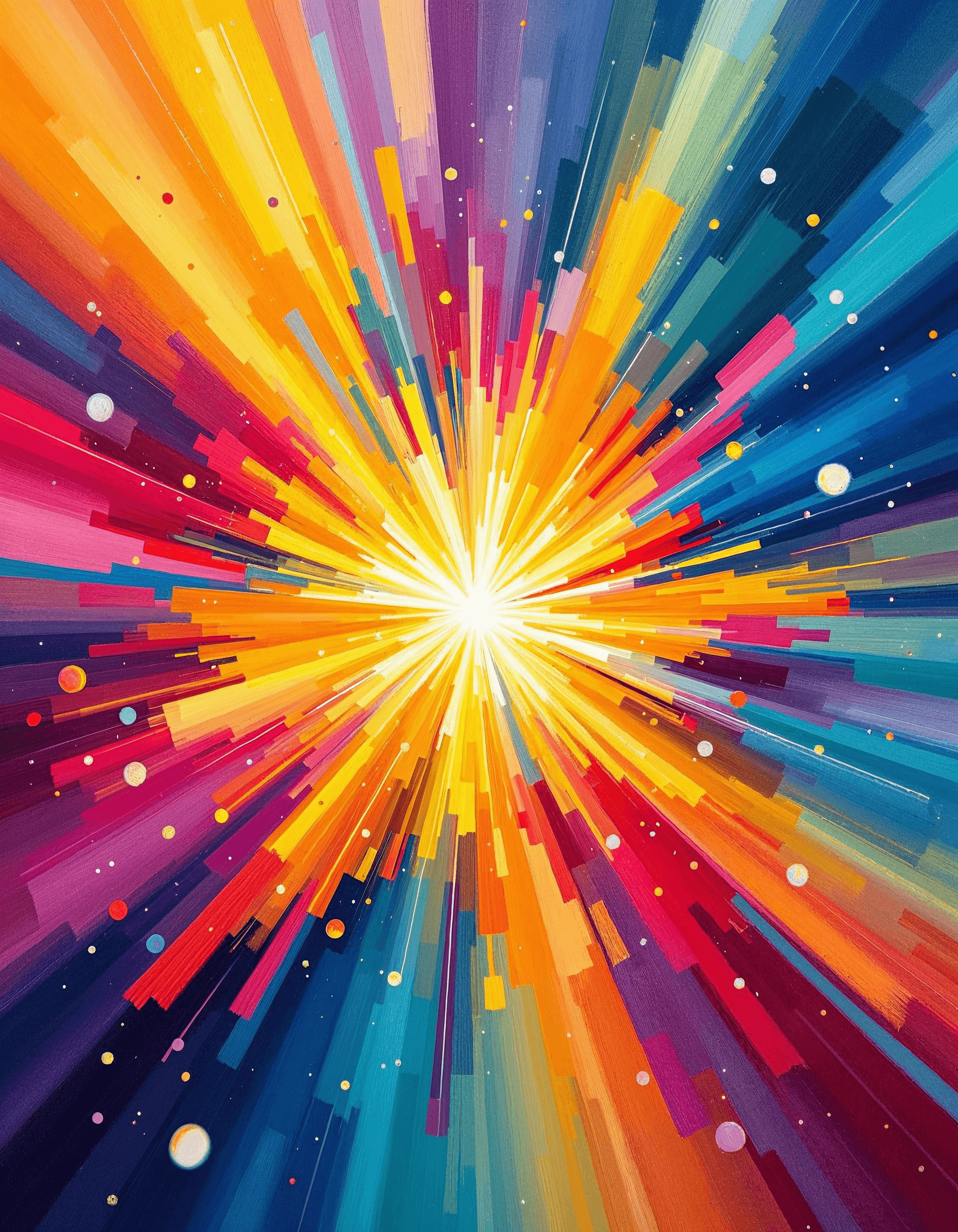 A burst of vibrant colors exploding outwards, representing the radiating energy of happiness and elation
