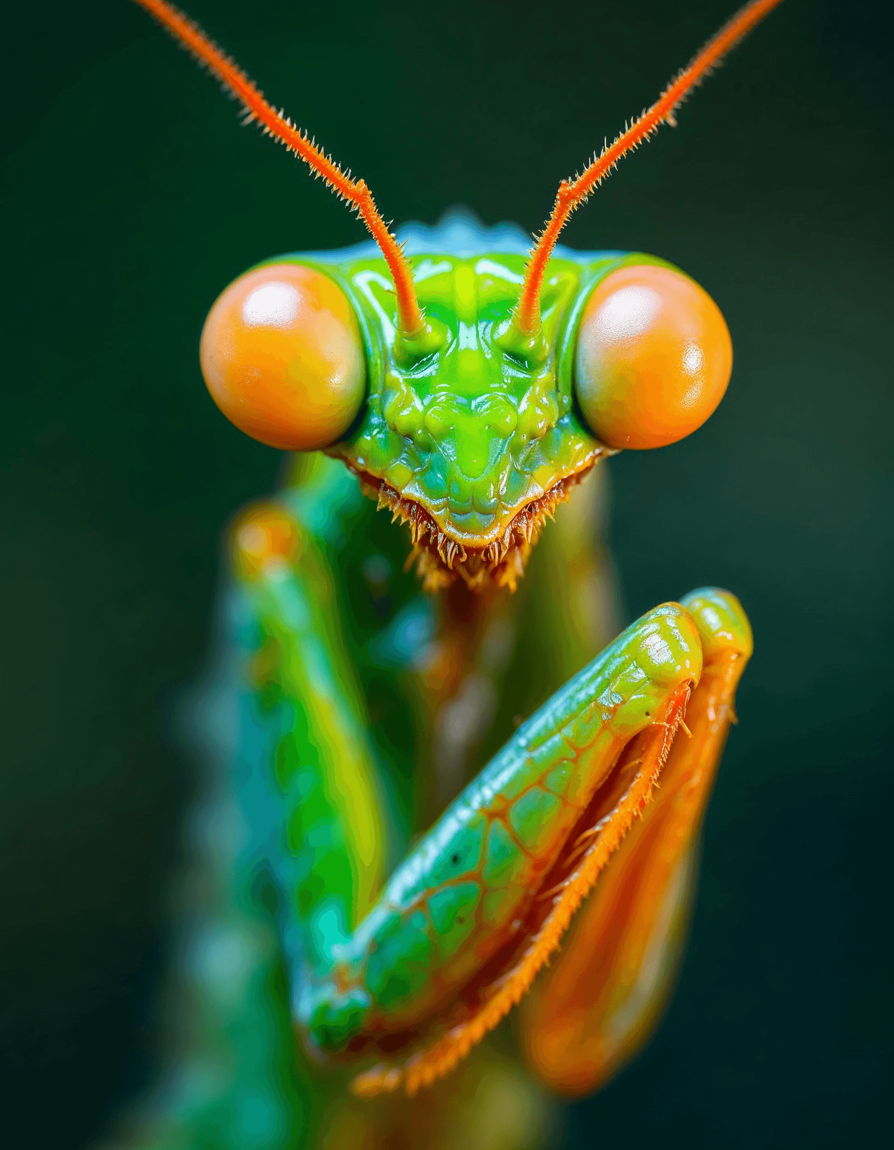 Witness the incredible transformation as a praying mantis sheds its old skin, emerging with a stunning new exoskeleton in brilliant, vivid colors.