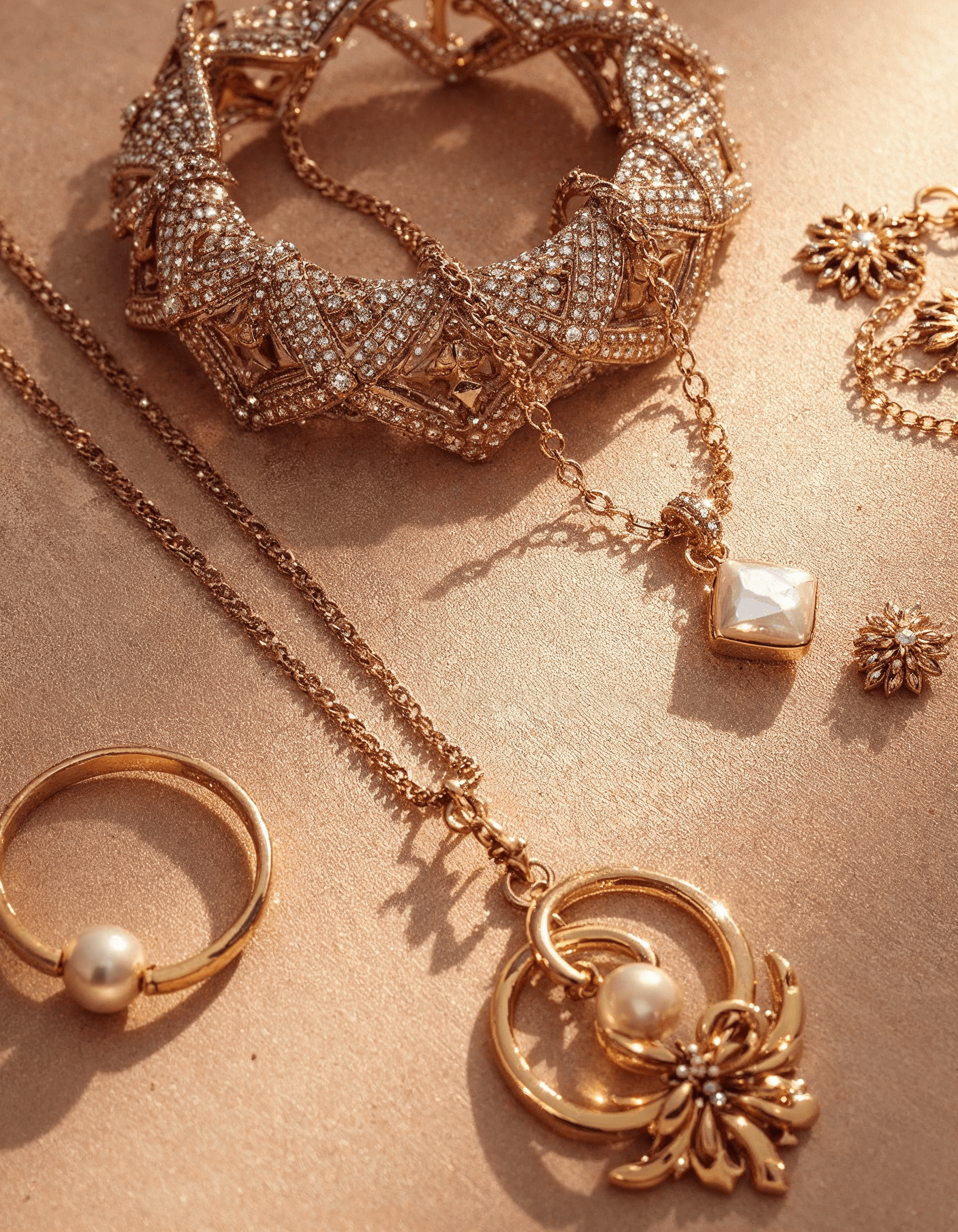 A collection of shimmering metal jewelry, highlighting the beauty and craftsmanship of metal adornment