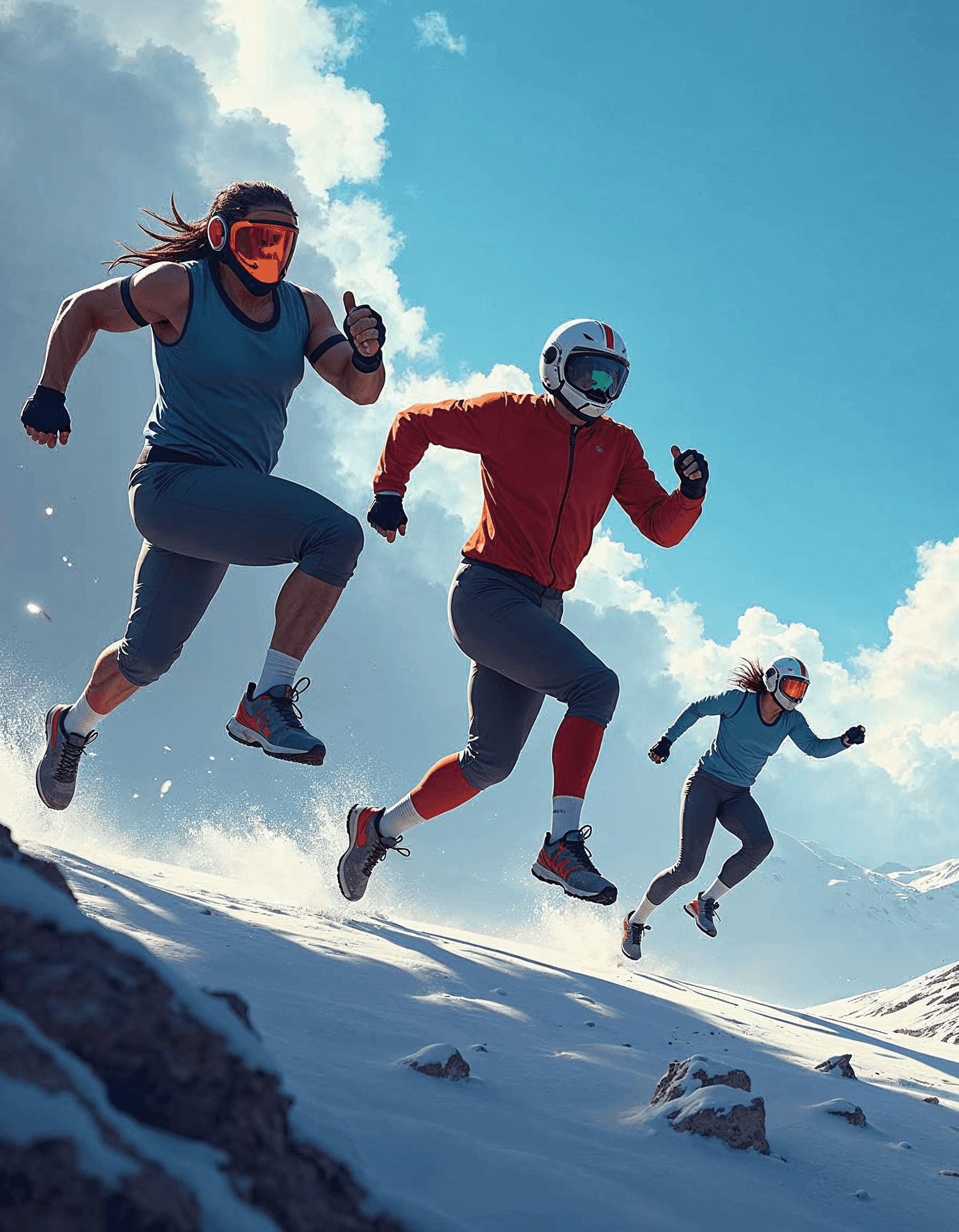 A digital illustration of a futuristic sporting event, featuring athletes competing in advanced technologies