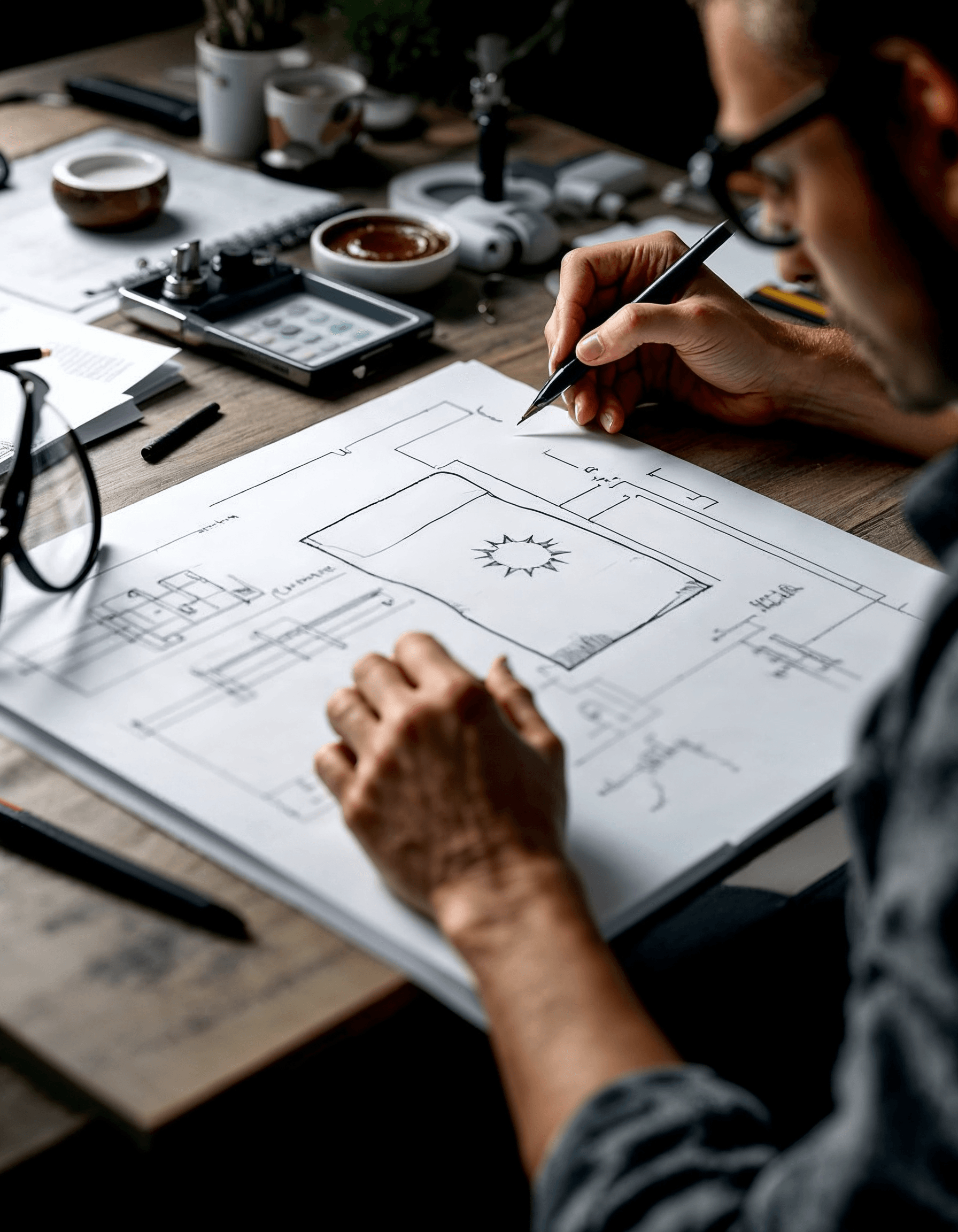 A flag designer sketching out a new flag concept, considering the principles of good flag design and the message it needs to convey