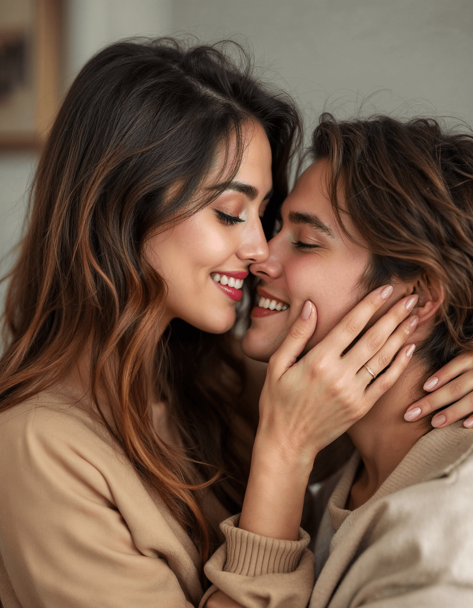 A tender caress on the cheek conveys deep emotional connection, showing love and intimacy through this simple yet powerful gesture of human affection.