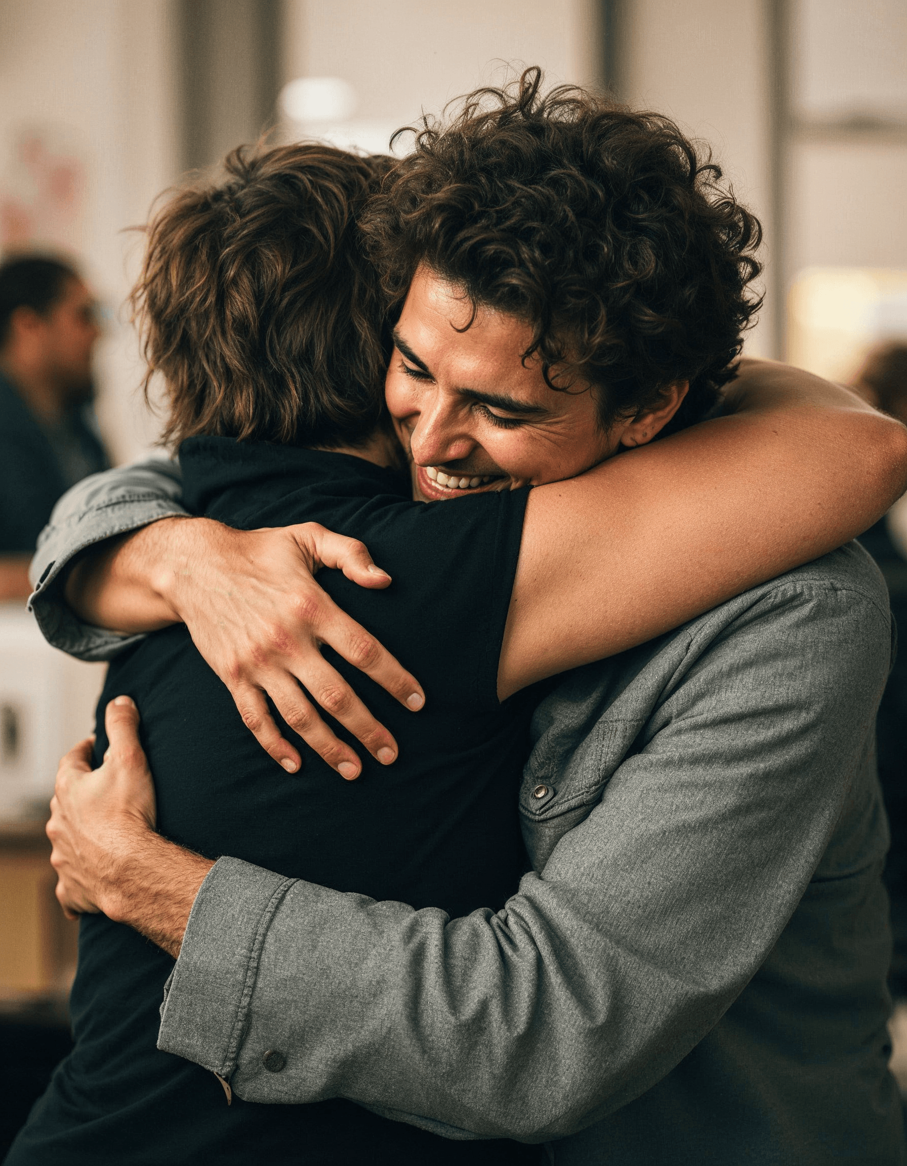 A warm hug between two people creates powerful emotional bonds, offering comfort, support, and deep affection that strengthens relationships and promotes wellbeing.