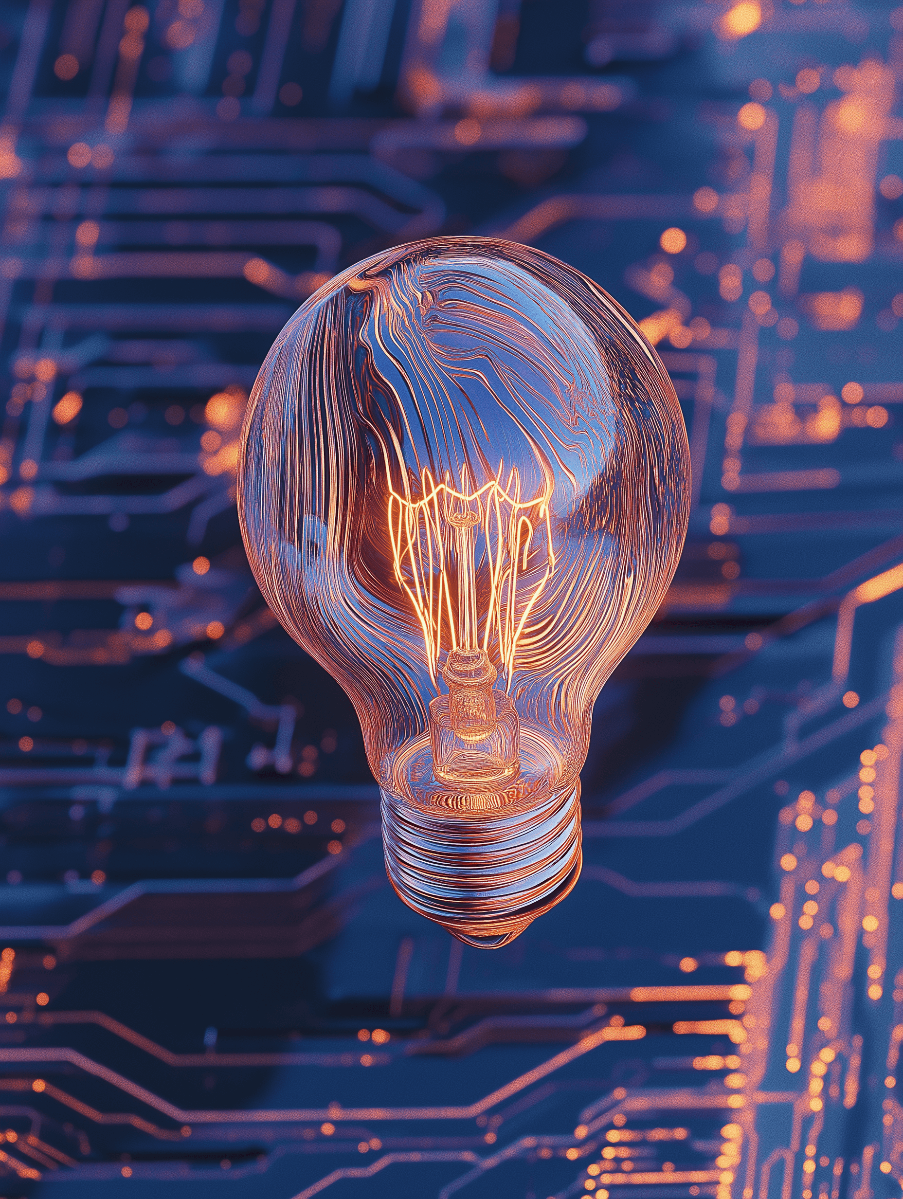 A lightbulb floating above a circuit board, symbolizing the spark of innovation within the digital world