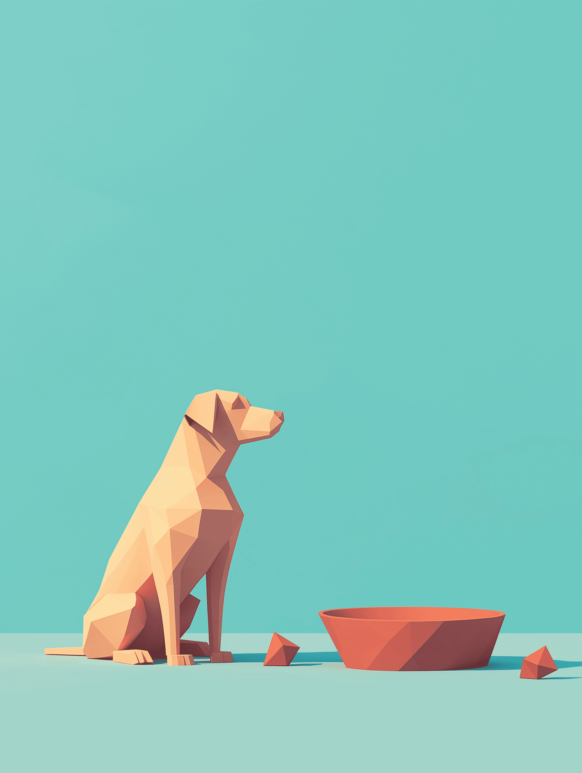 Discover stunning low-poly dog art featuring geometric pet bowls and angular toys. Perfect for modern digital design projects and minimalist decor.