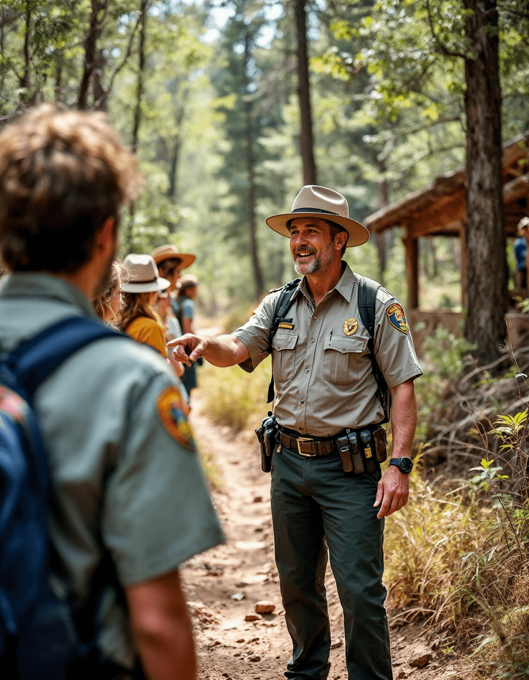 dirt trail, educational hike, environmental education, forest ecosystem, forest walk, guided tour, hiking group, national park, natural history, Natural-habitat, nature discovery, Nature exploration, nature guide, Outdoor adventure, outdoor enthusiasts, outdoor learning, Park ranger, park scenery, park visitors, ranger expertise, ranger-led tour, scenic trail, sustainable tourism, Trail, Trekking, visitor engagement, Wildlife, wildlife conservation, wildlife observation, wildlife spotting, wildlife tracking, wildlife tracks