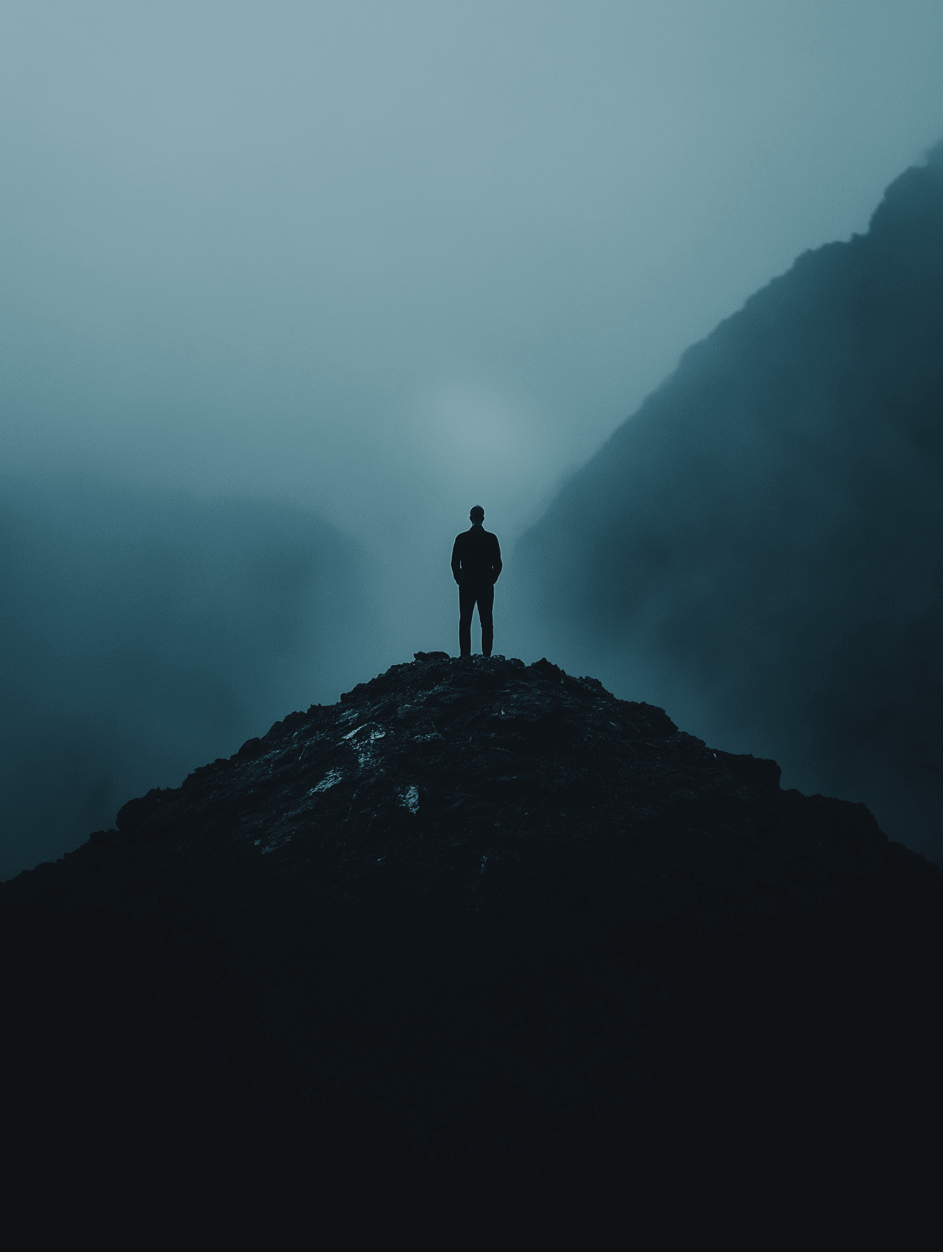 A person standing on a pile of coal, holding a delicate flower made of glowing light