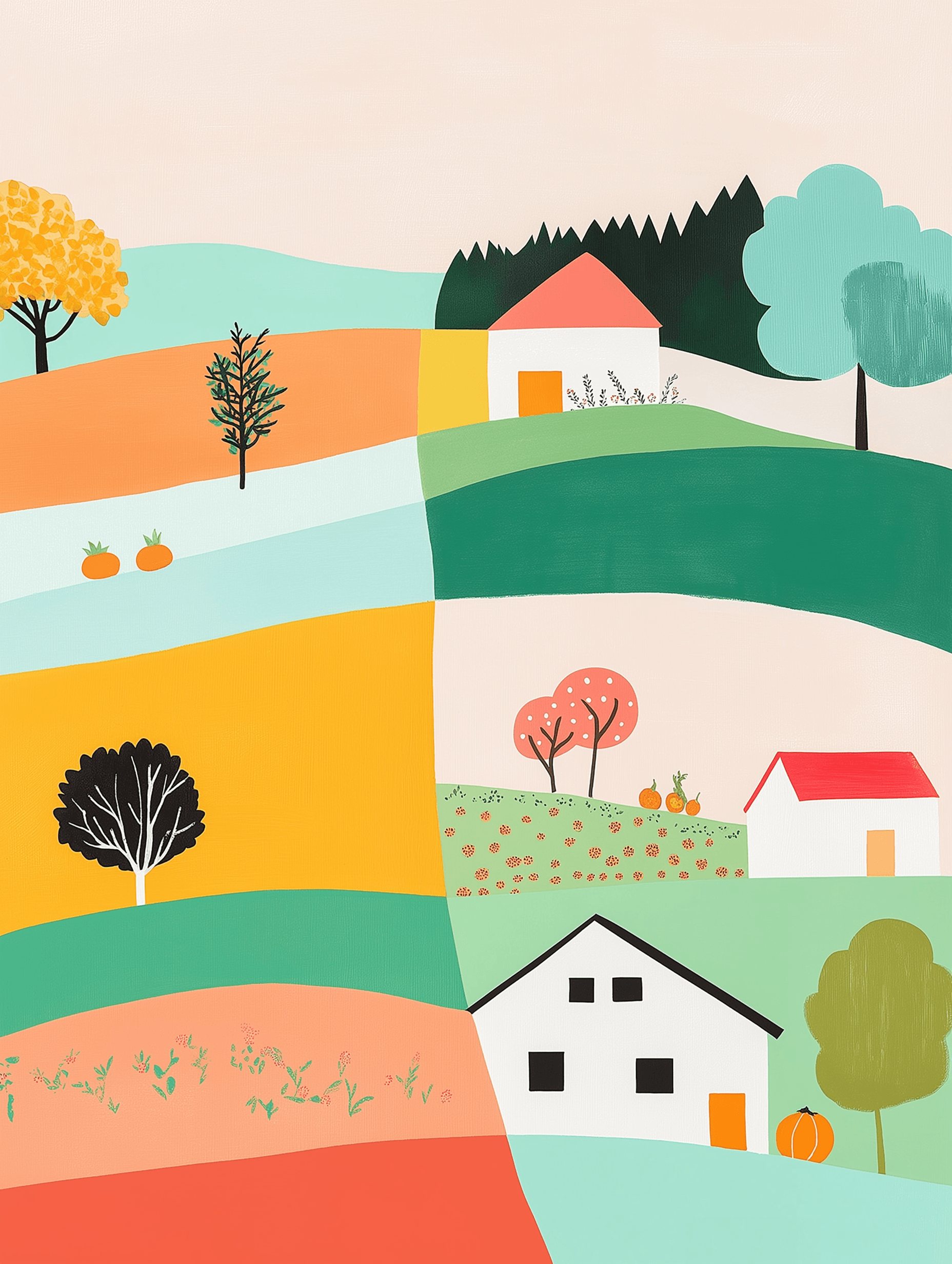A puzzle with pieces shaped like different produce items, forming a map of a farm, illustrating the intricate planning required