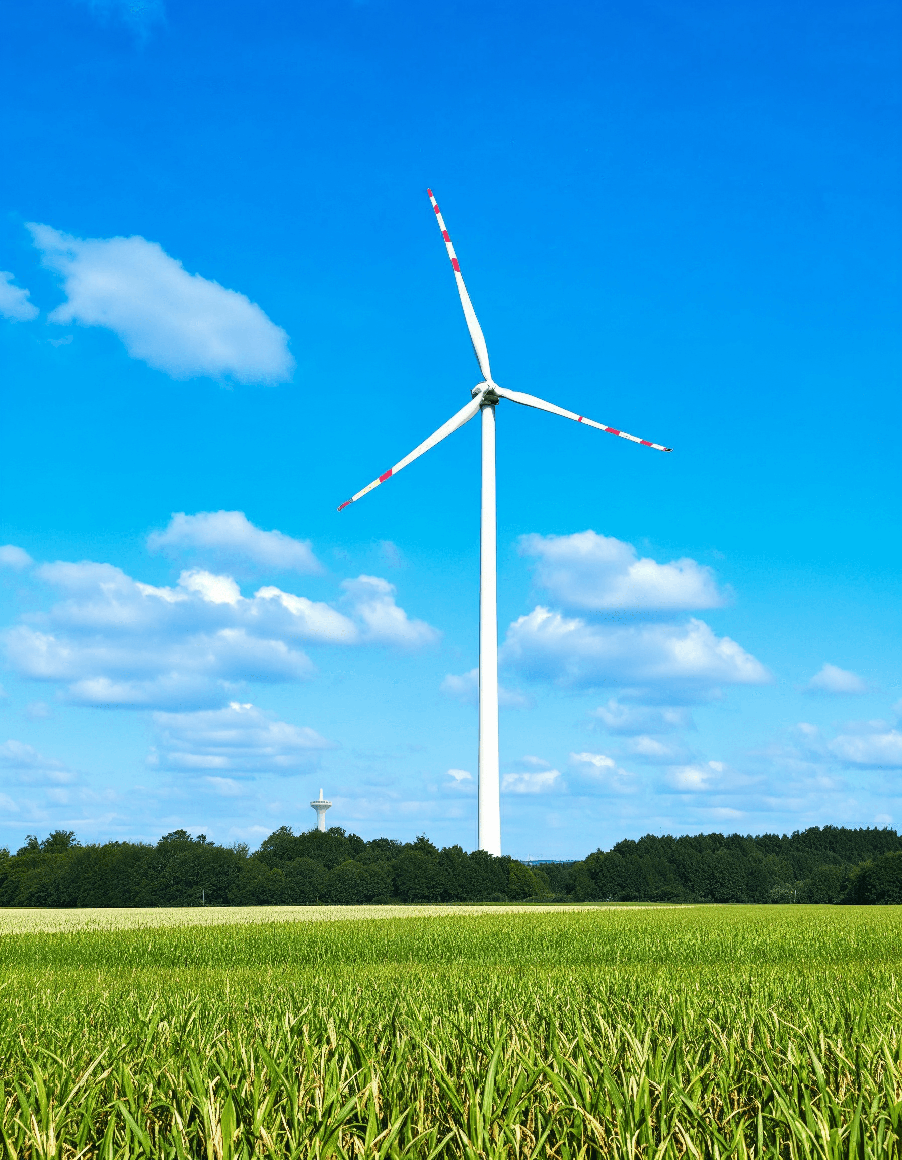 A wind turbine spinning in a field, generating clean and renewable energy