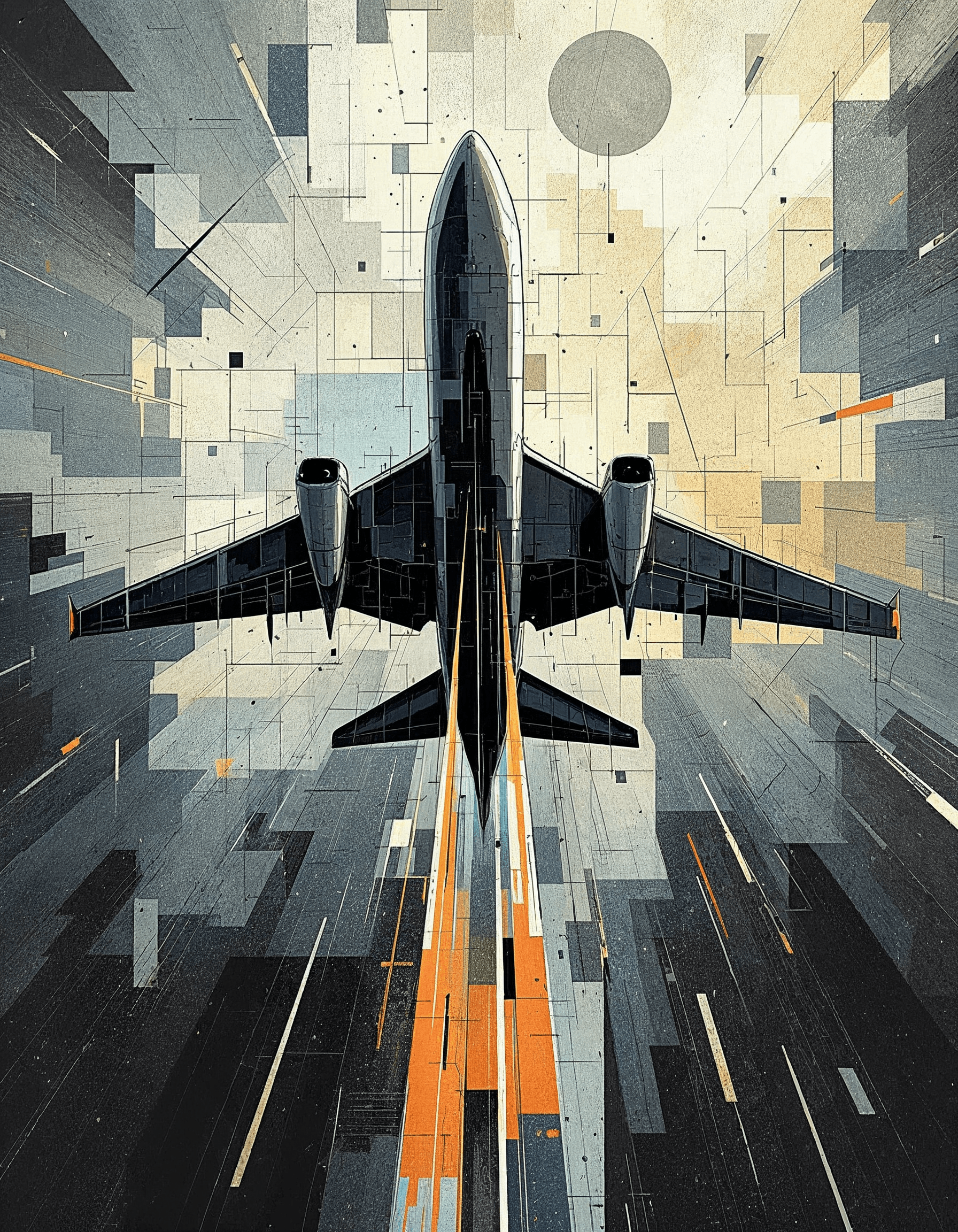 Discover the power of abstract aviation art as geometric planes cut through fragmented skies, creating dynamic visual narratives of motion and progress.
