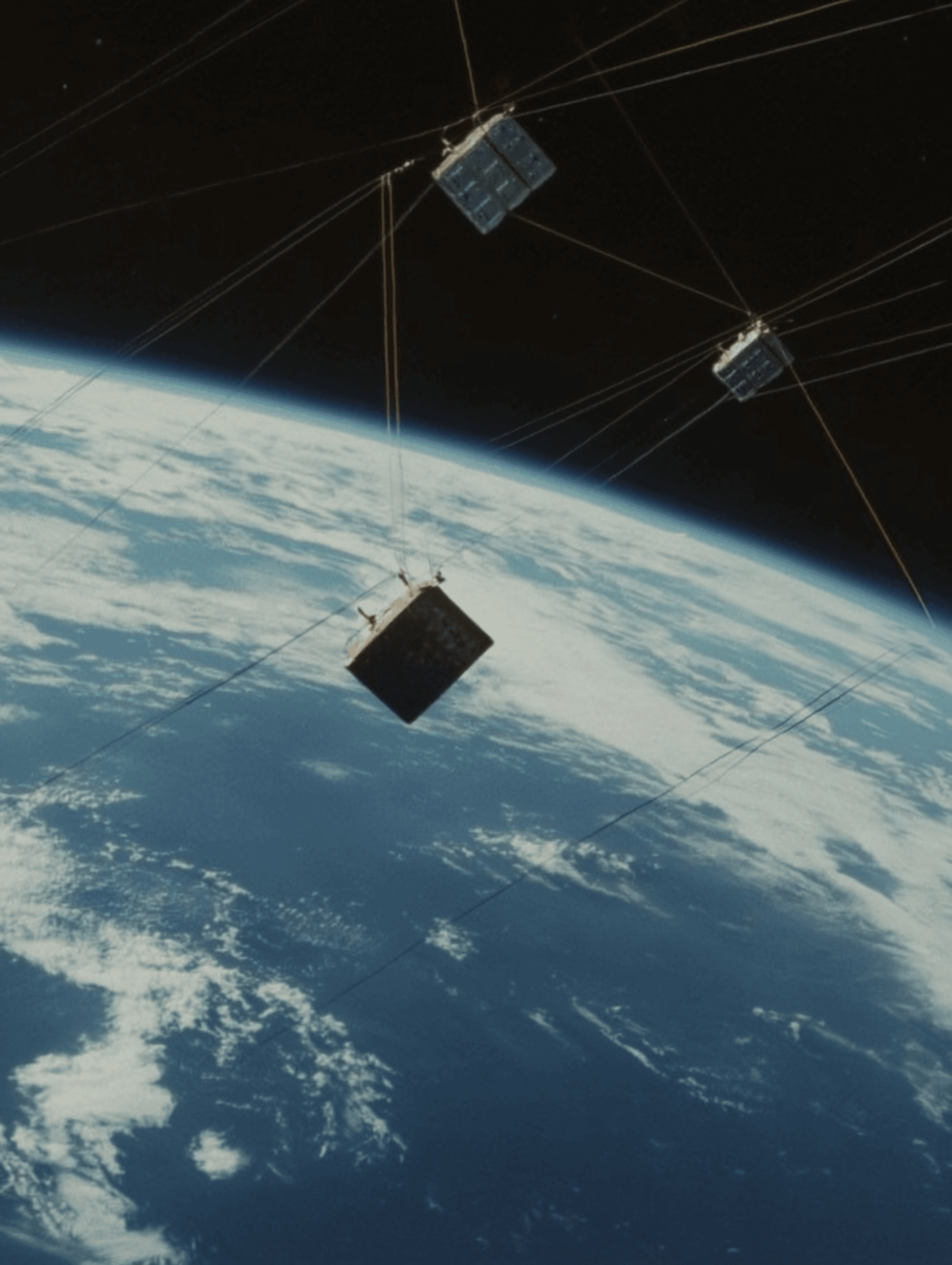 Multiple satellites forming a connected web around the Earth
